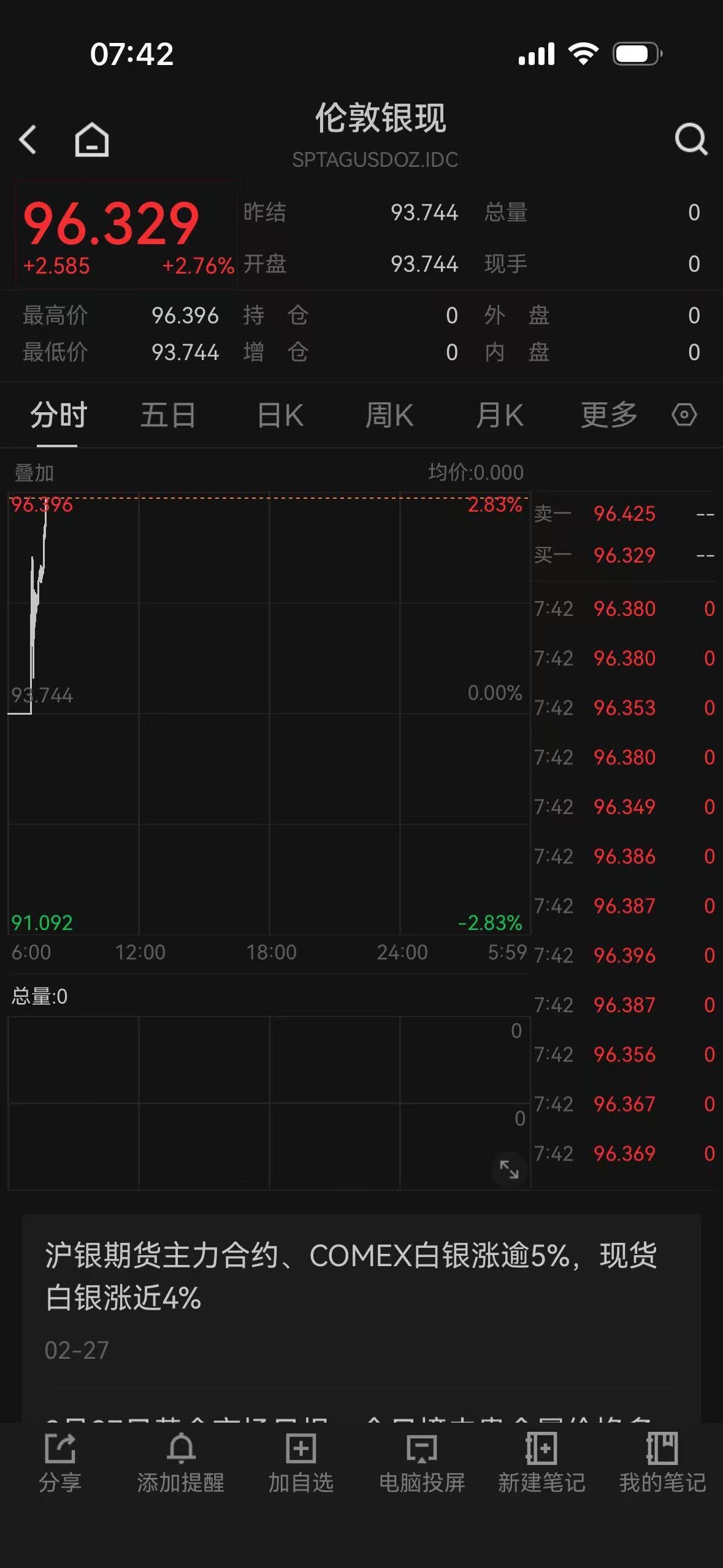 现货白银涨2.76%,站上96.329美元/盎司。