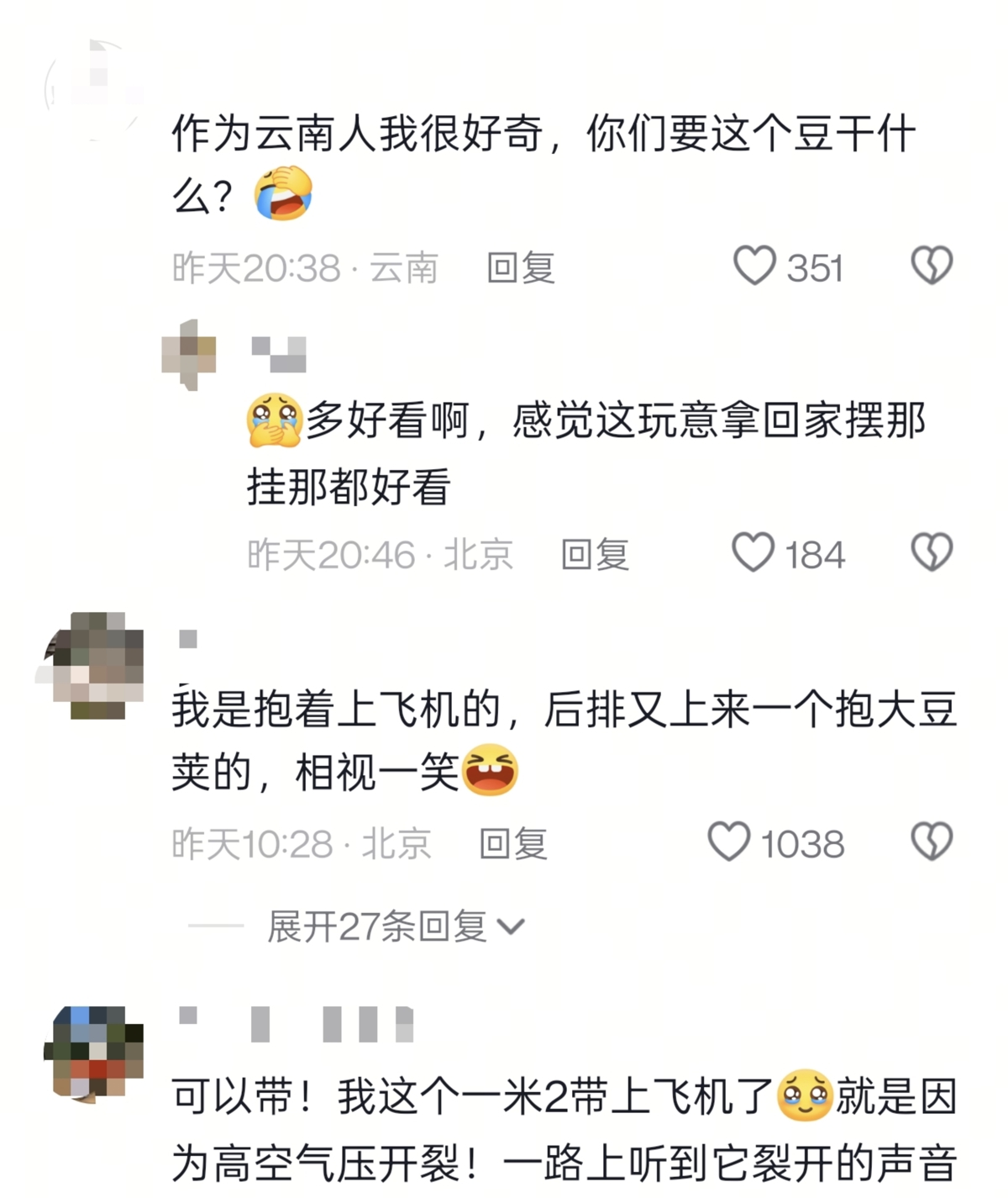 网友们纷纷带着云南大豆荚坐飞机