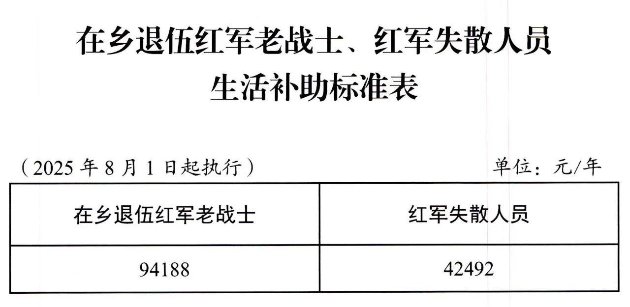 三、红军失散人员生活补助,在当地2024年标准基础上,按退役军人事务部、财政部提标标准,每人每年增加1236元。