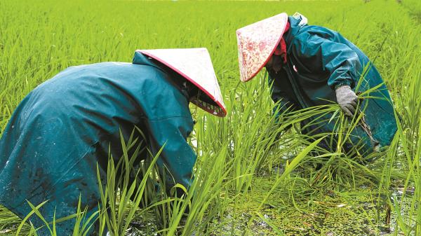 前天下午,在奉化区西坞街道亭山村茭白种植基地里,连片的茭白地漾开层层绿波。在潜美蕊等5名农技人员的指导下,村民躬身田间,疏苗、整垄、管护,呈现一派繁忙的生产景象。