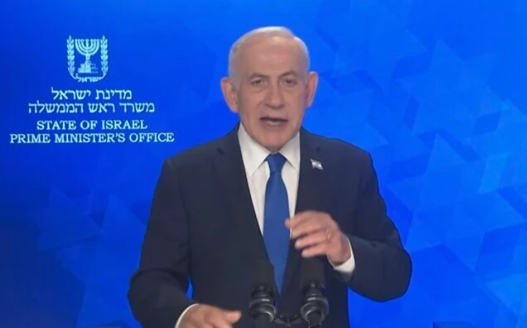 当地时间3月7日晚,以色列总理内塔尼亚胡发表视频讲话。