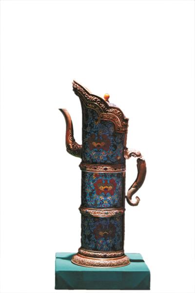 乾隆款掐丝珐琅缠枝莲纹嵌石多穆壶。