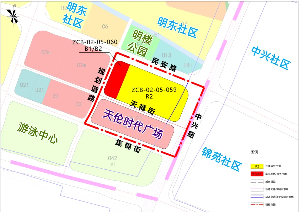 调整后,该地块大部分用作二类居住用地、小部分用作商业商务用地。其中: