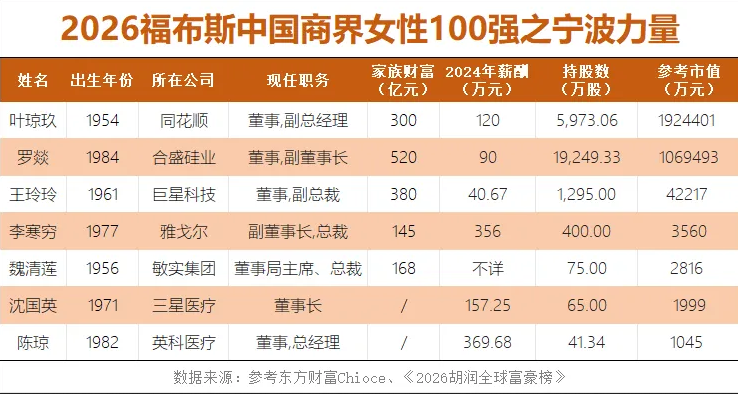 近日,福布斯中国第12次发布“中国杰出商界女性百强”,多位宁波女儿和儿媳妇榜上有名。其中,既有白手起家的创一代,也有接班不久的创二代。这些铿锵玫瑰正书写着属于她们的商业传奇。