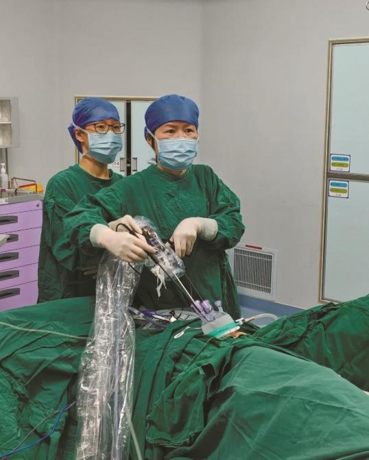 张英芝(右)在手术中。