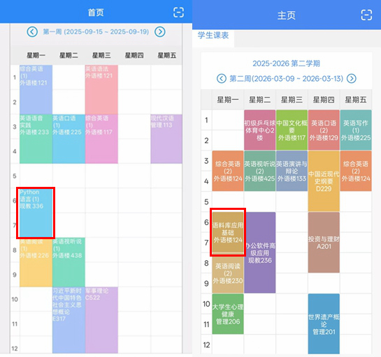 打开何晓筠的课表,除了传统英语专业必备的口语、写作等课程,大一上学期学校还安排了Python语言课程,这个学期则有语料库应用基础课程。