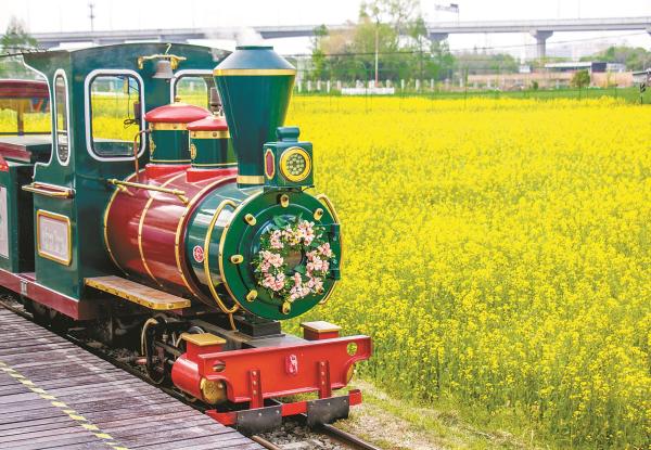 眼下,江北区甬江街道达人村景区60多亩油菜花海流金溢彩,复古小火车穿行其中,稻田打卡点与艺术装置相映成趣。近年来,达人村农旅综合体依托花海,让美丽风景转化为“美丽经济”。数据显示,景区近一周吸引游客超2万人次。(甬派客户端宁波日报 李想 王佳辉 摄)
