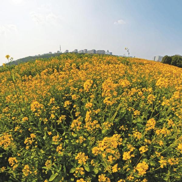 记者在现场看到,这片油菜花海位于鄞州区小江湖路与日丽路交叉口的李惠利故居周边,紧邻奉化江畔,总面积达5600平方米。微风拂过,油菜花随风摇曳,层层叠叠的金色波浪此起彼伏,空气中弥漫着清甜的花香,沁人心脾。花海间蜿蜒的碎石小径,方便市民近距离观赏、拍照,不远处的李惠利故居青瓦白墙、马头翘角,江南民居的温婉与金色花海的绚烂碰撞,勾勒出一幅绝美春日画卷。