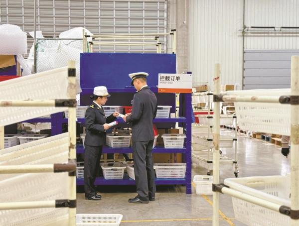 宁波海关关员对跨境电商消费品开展风险监测工作。通讯员 郑天帆 摄