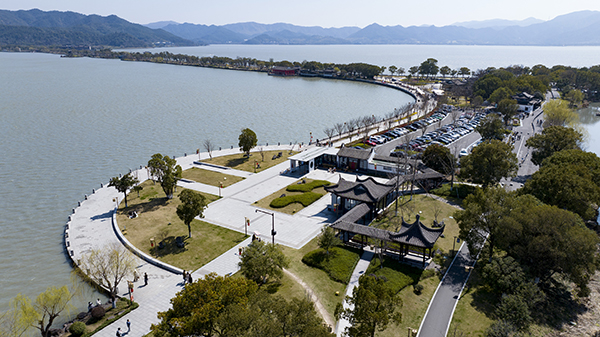 为了迎接2026宁波马拉松,东钱湖在近期持续加强沿线市政设施维护和保洁力度,不断提高绿化美化水平,努力为市民游客提供最佳视觉享受,让选手一同跑在春天里。(通讯员 张江科 严龙/摄)