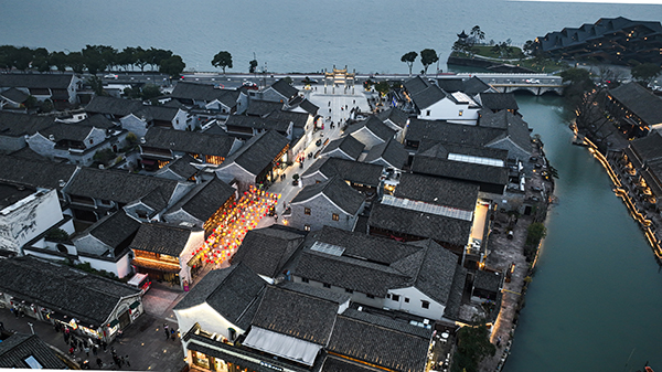 暮色中的小普陀湖心堤(资料图)
