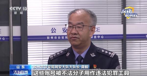 胶州市公安局网安大队大队长 龚毅:这些账号被不法分子用作违法犯罪工具,他们用这些账号实施诈骗、刷单,发布涉赌涉黄违法信息,对公民的财产安全和隐私保护造成了严重威胁。