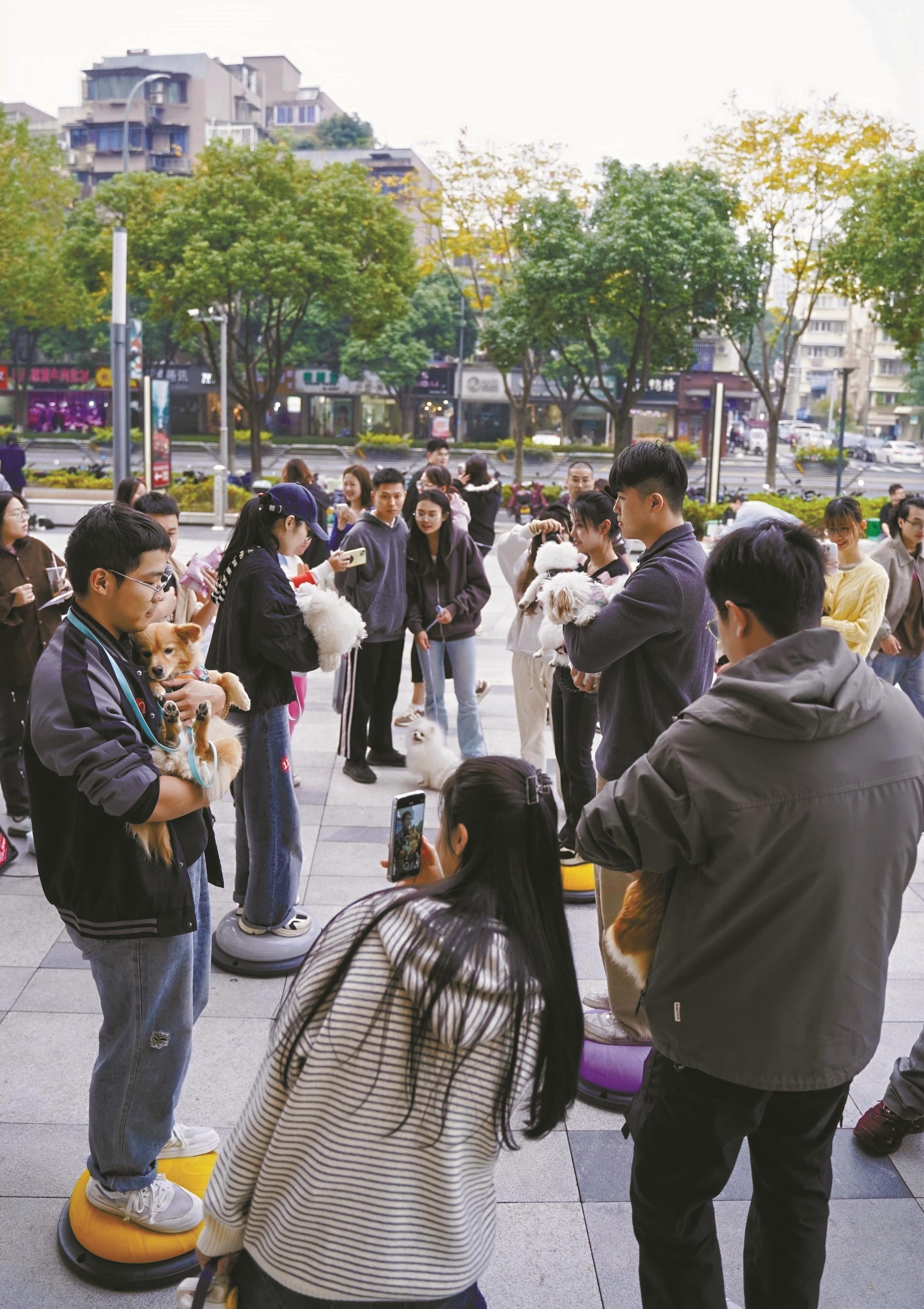 鄞州区百丈街道潜龙社区联合花园里商圈举行的萌宠假期派对。