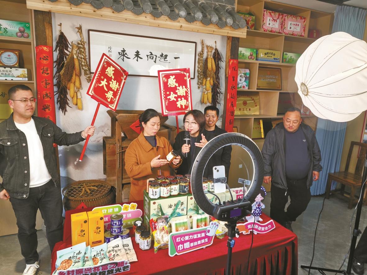 共富工坊通过网络直播推销奉化西坞农特产品。