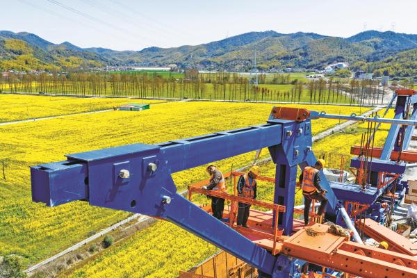 连日来,江北区慈城镇五湖村、妙山村的800亩油菜花热烈绽放,与蜿蜒村道、在建的通甬高铁工程交相辉映,勾勒出一幅生机盎然的城乡融合新画卷。