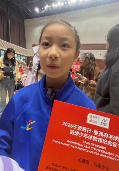 现场,10岁的宁波队小选手王黛胤面对镜头,稚嫩却坚定地表达了自己的梦想。刚刚与偶像过完招的她坦言:“感觉我的高球打不出去,但我发挥出了自己的战术。”当被问及未来,她毫不迟疑:“我很热爱羽毛球,我想成为跟梁伟铿叔叔一样的人。”