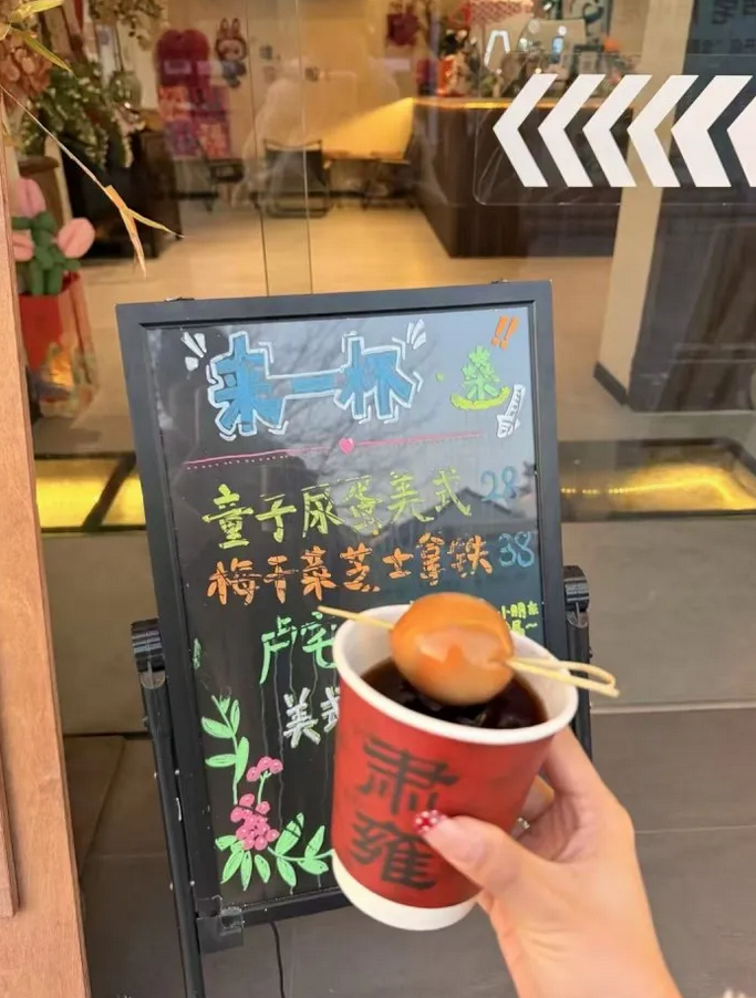 前段时间,东阳当地一家咖啡馆直接将童子尿蛋和美式咖啡结合在一起,这个离谱的搭配,引爆全网,一度让咖啡店成了网红打卡点,不少人会买上一杯,然后拍个照片上传到短视频平台。