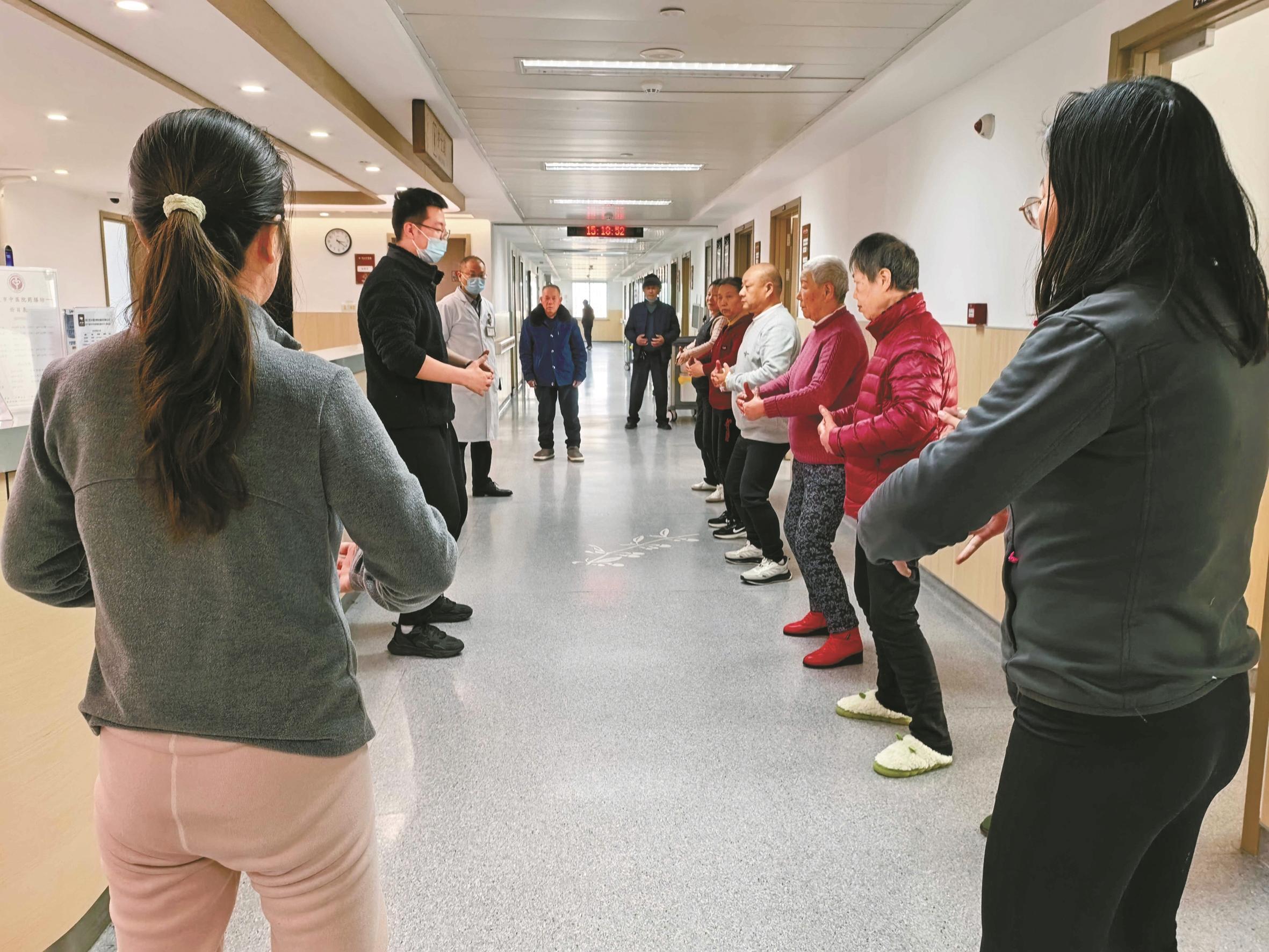 宁波市中医院的住院患者正在练习八段锦。(陈敏 吴佳礼 摄)