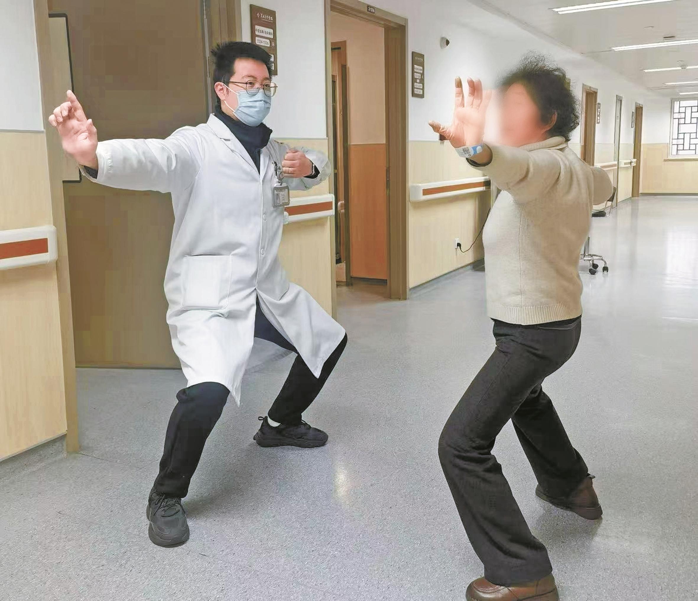 在市中医院中医经典/治未病科病区,八段锦成了患者翘首以盼的“康复课”。每周一至周五下午3点左右,走廊上总会聚起等候的人群。该病区的医师张舟南负责带领大家练习,其示范动作柔和却有力:“‘两手托天’能拉伸三焦经,‘调理脾胃须单举’契合脾升胃降的原理,这些动作都在疏通奇经八脉,帮身体调畅气血。”70多岁的王阿姨练了5天就直呼神奇:“一开始练得浑身酸痛直冒汗,现在练完,全身上下暖烘烘,手脚也不冰了!”