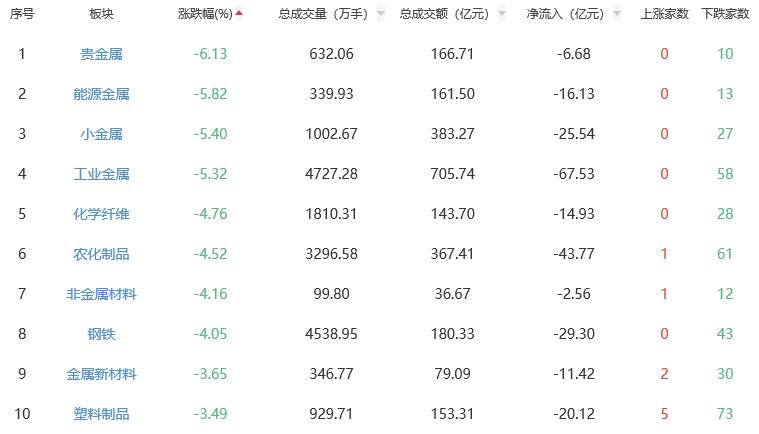 板块方面,油气开采及服务、燃气、煤炭开采加工、电力上涨,贵金属、能源金属、小金属等跌幅居前。
