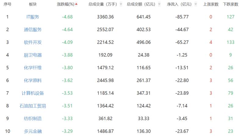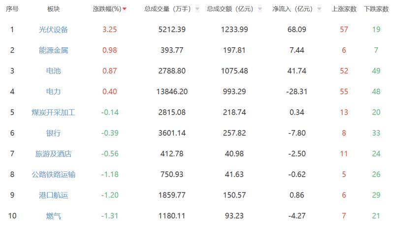 板块方面,光伏设备、能源金属、电池等涨幅居前,IT服务、通信服务、软件开发等跌幅居前。