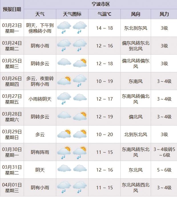 新的一周,宁波的天气将上演一场“先雨后晴”的春日变奏。整周气温走势平稳,最高气温在16℃~20℃之间浮动,最低气温维持在10℃~14℃。具体来看——
