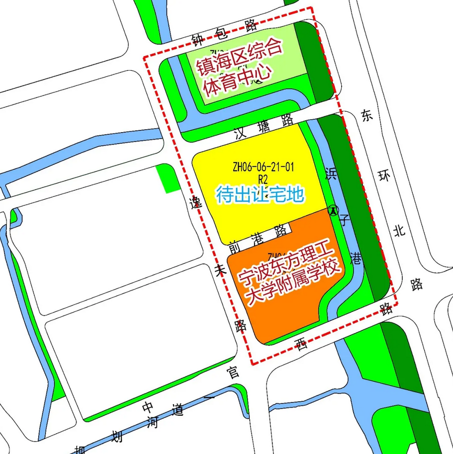 区块内,在建有总投资约13.3亿元、含浙东最大室内滑雪场的镇海区综合体育中心,以及九年一贯制、办学规模72个班级、将于2026年秋季投入使用的宁波东方理工大学附属学校。