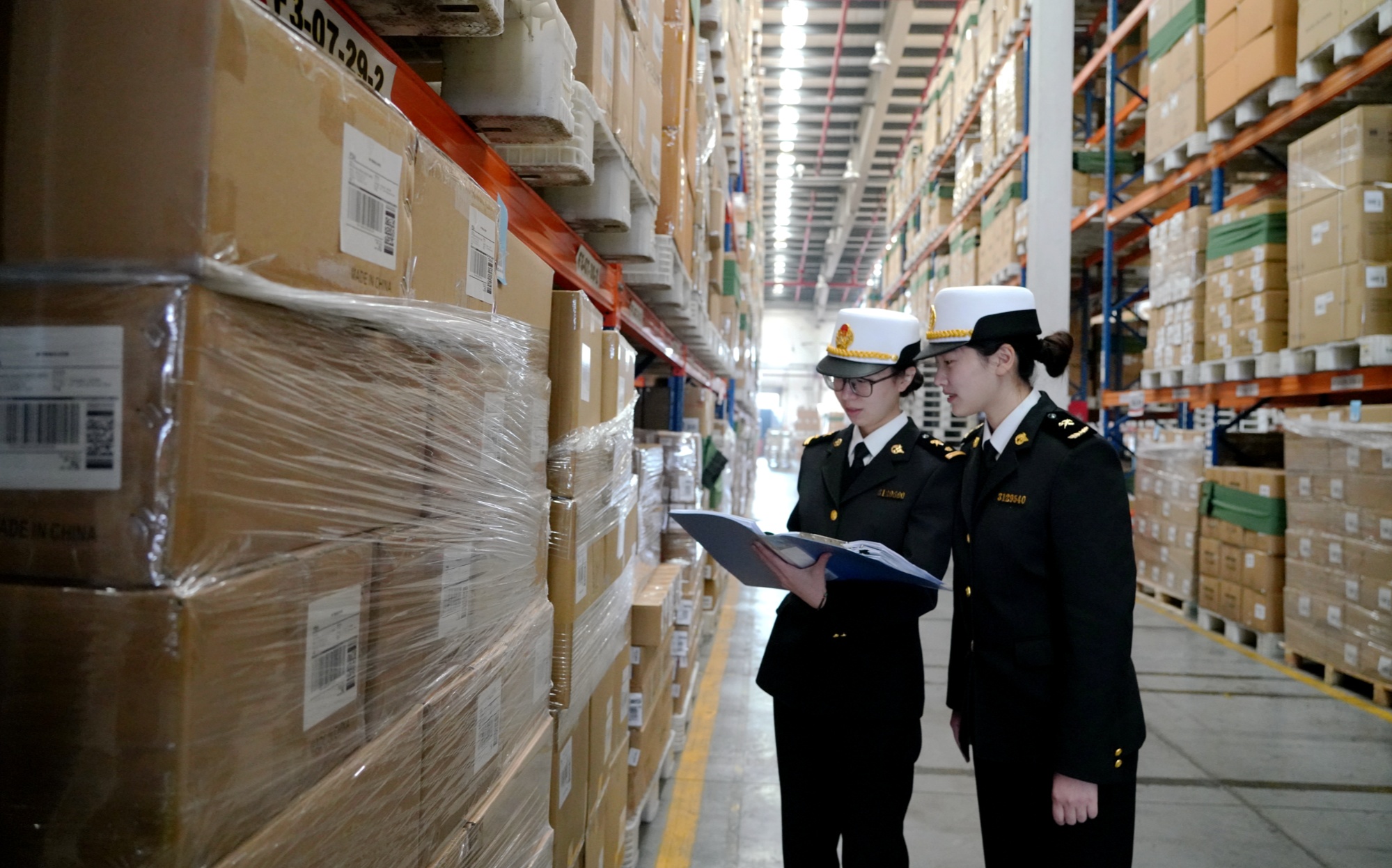 宁波海关关员对跨境电商特殊监管区域出口货物开展核查(央广网发 朱佳娜 摄)