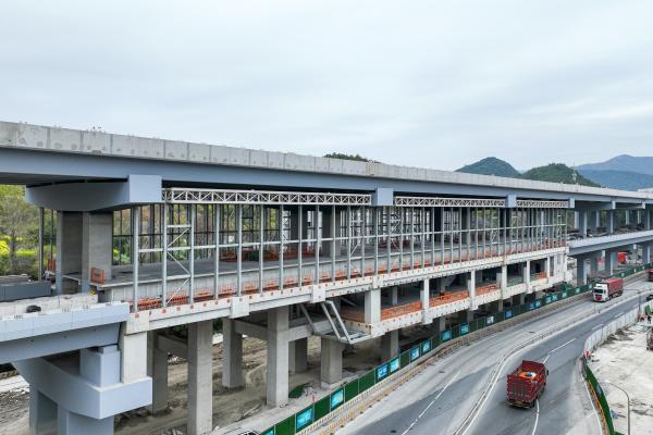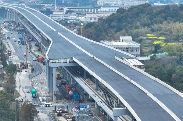 九龙大道快速路(北外环—东海大道)一期工程采用“主线高架+地面辅道”的建设形式,高架上层为城市快速路,中间层为轨道交通宁慈线,下层地面道路为城市主干路,是宁波北环高架、机场南路高架之后的又一条公轨合建的城市快速路。项目计划2027年上半年建成通车。