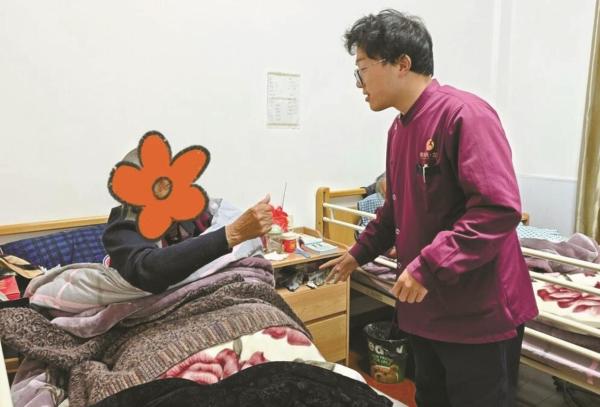 赵彦毓的一天,是从清晨的健康监测开始的。从定时查房排除安全隐患,到量血压、测体温、做记录……每一项工作他都做得细致入微。面对突发状况,他始终冲在最前面:余爷爷突发不适,他第一时间启动应急流程,全程陪护就医,在病床前守了三天三夜;沈奶奶外出配药,他寸步不离地陪同,把每个细节都照料妥帖……