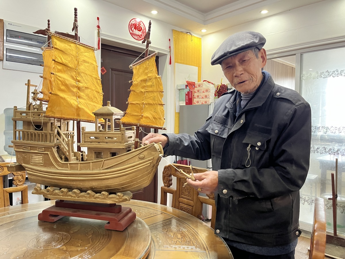 “我是土生土长的澥浦人。古时候,当地人以捕鱼为生,所以我做的大多是渔船模型。”翁关福说,船模的比例、尺寸,都刻在他脑子里——那是当年在船厂一点点攒下的经验,“船的样子、大小,心里有数,一边想一边就能画出来。”