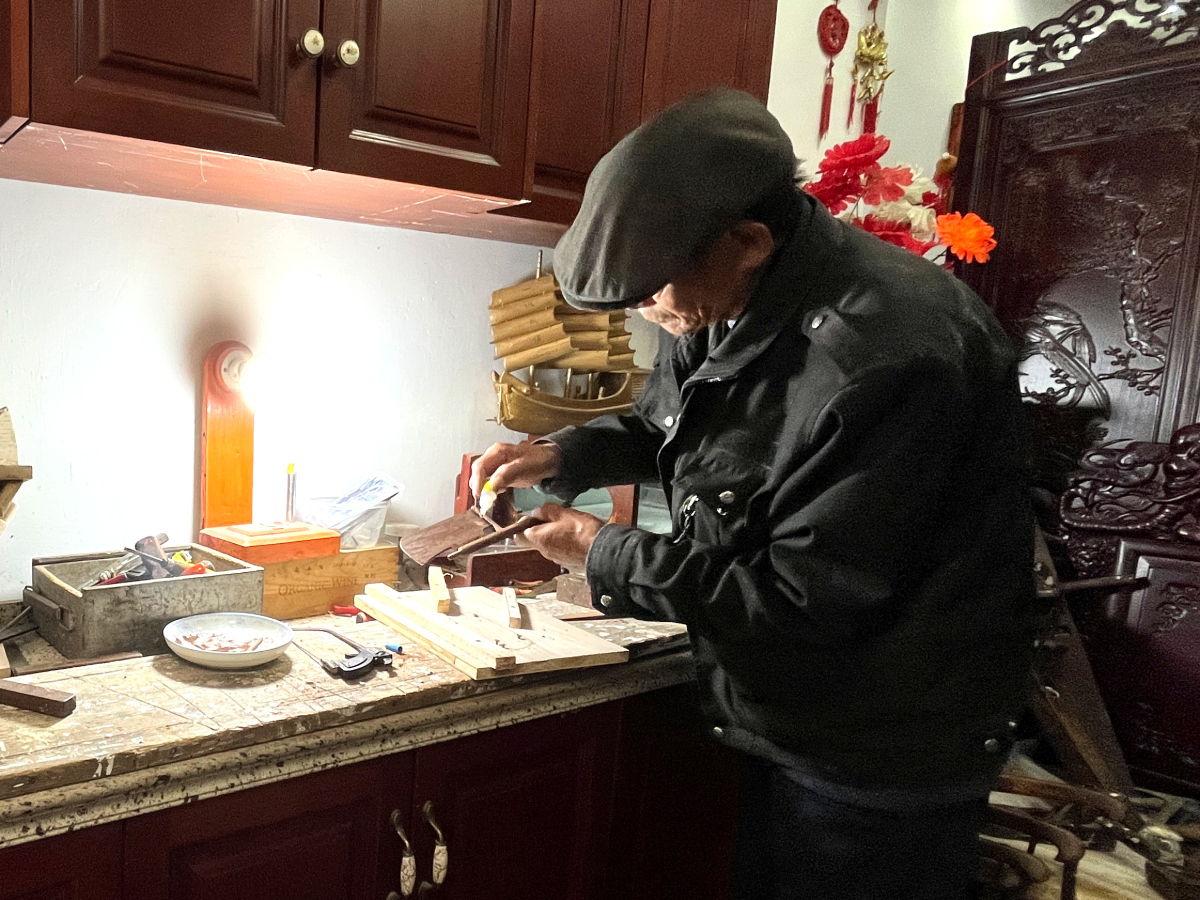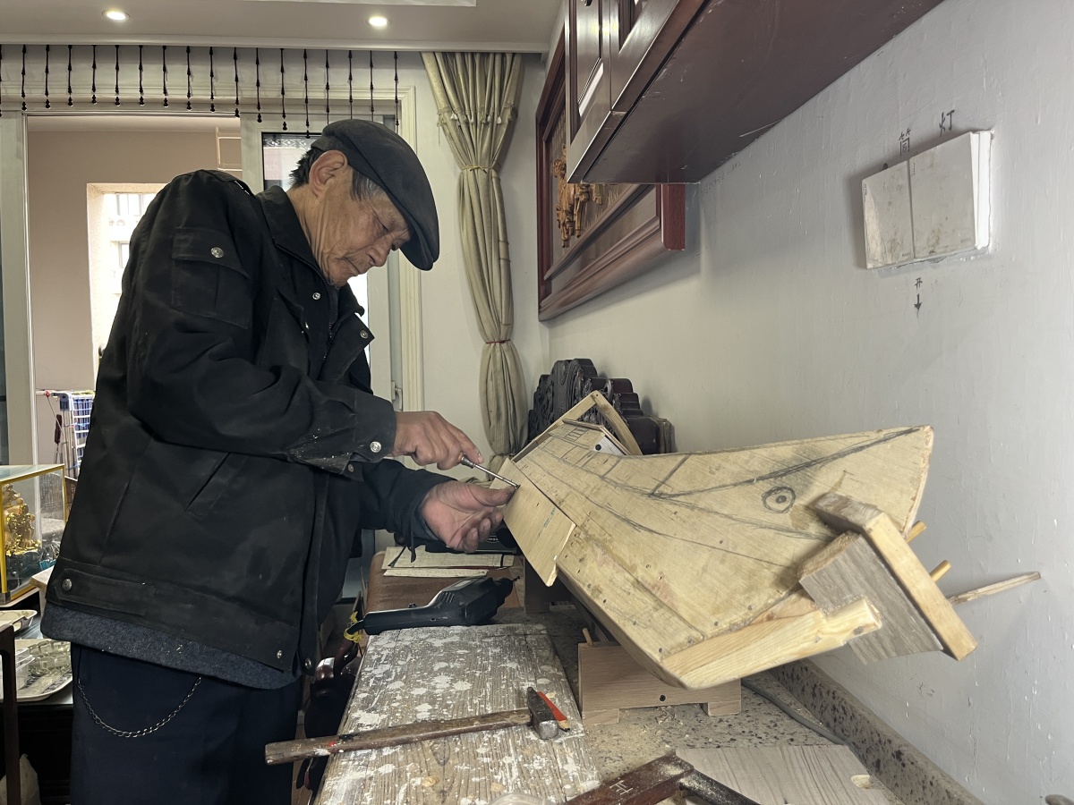 今年年初,在澥浦镇文化站推动下,“澥浦船模制作技艺”被列入第九批镇海区非物质文化遗产名录。翁关福,也正式成为这项技艺的代表性传承人。