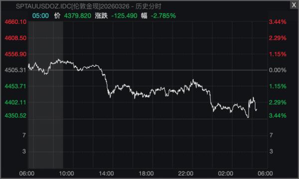 Wind数据显示,截至3月26日收盘,现货黄金跌2.79%,报4379.68美元/盎司;COMEX黄金期货跌3.85%,报4376.90美元/盎司。