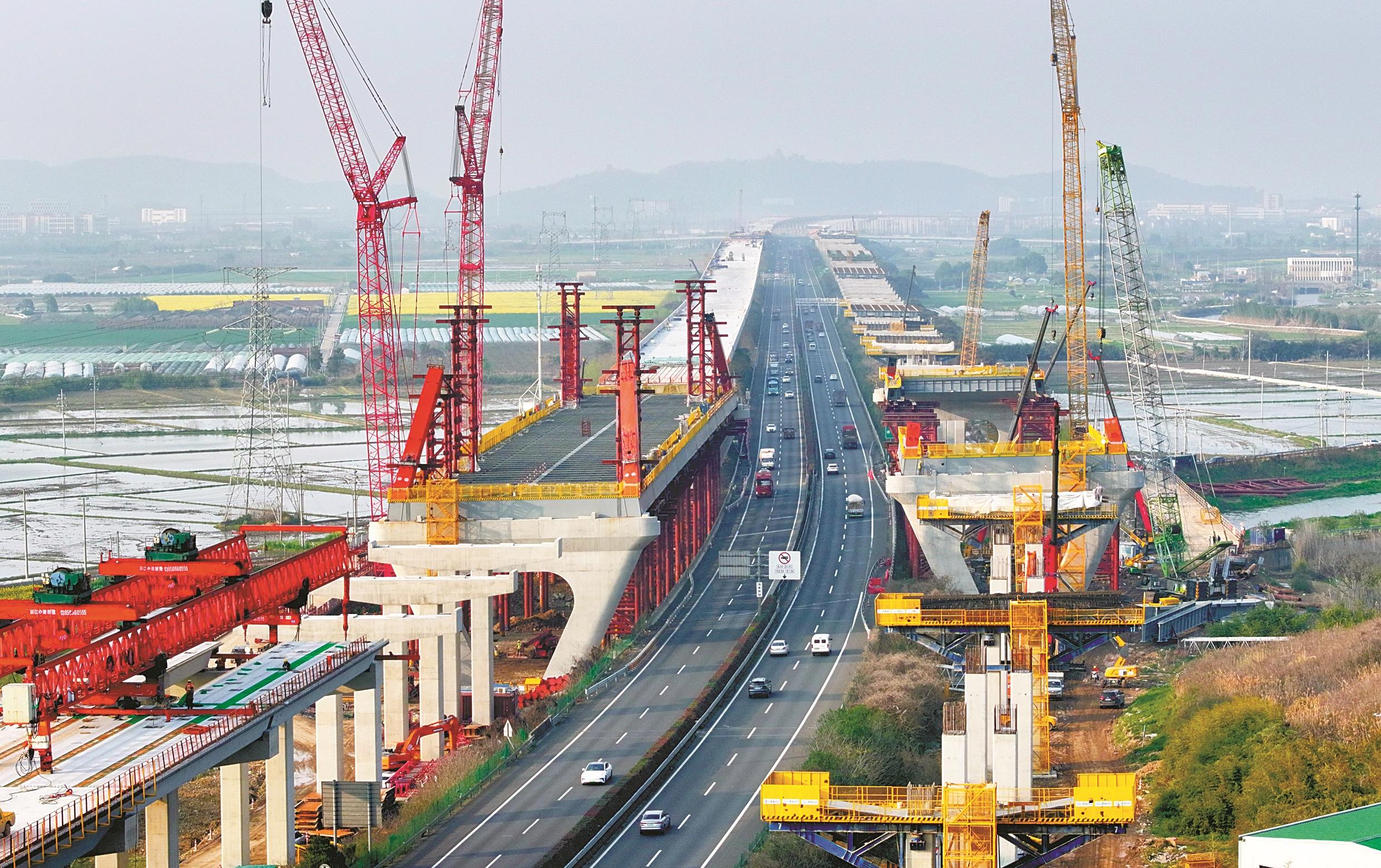 项目建成后,将有效缓解甬台温高速宁波段交通压力,对推动区域经济高速发展和发挥高速公路网规模效益具有重大意义。(唐严 摄)