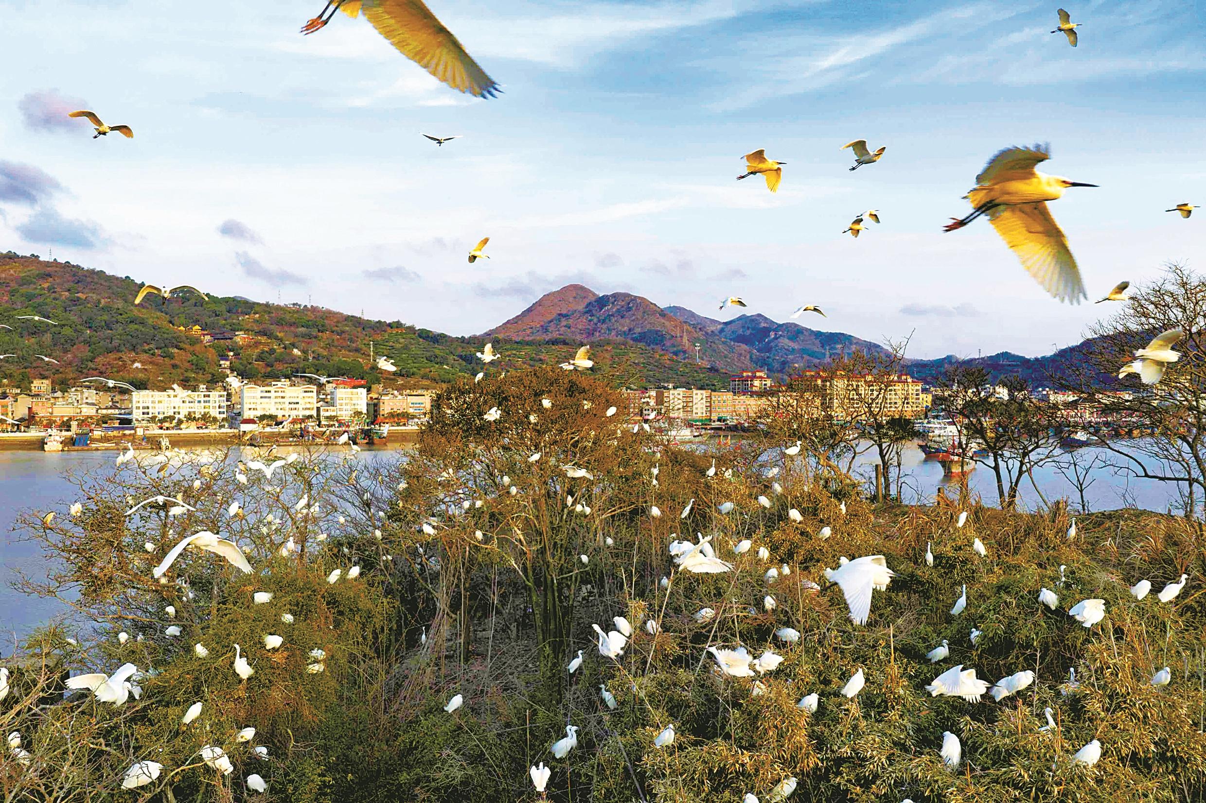 近年来,随着当地生态环境持续优化,海洋生态越发向好,为各类水鸟提供了安逸的栖息繁衍家园。每年春季,鸥鹭翔集已成为石浦港一道独具特色的风景线。