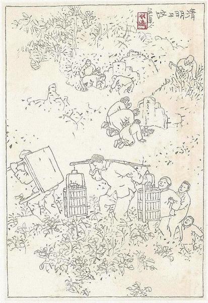 贺友直《清明上坟》,纸本,宁波美术馆藏
