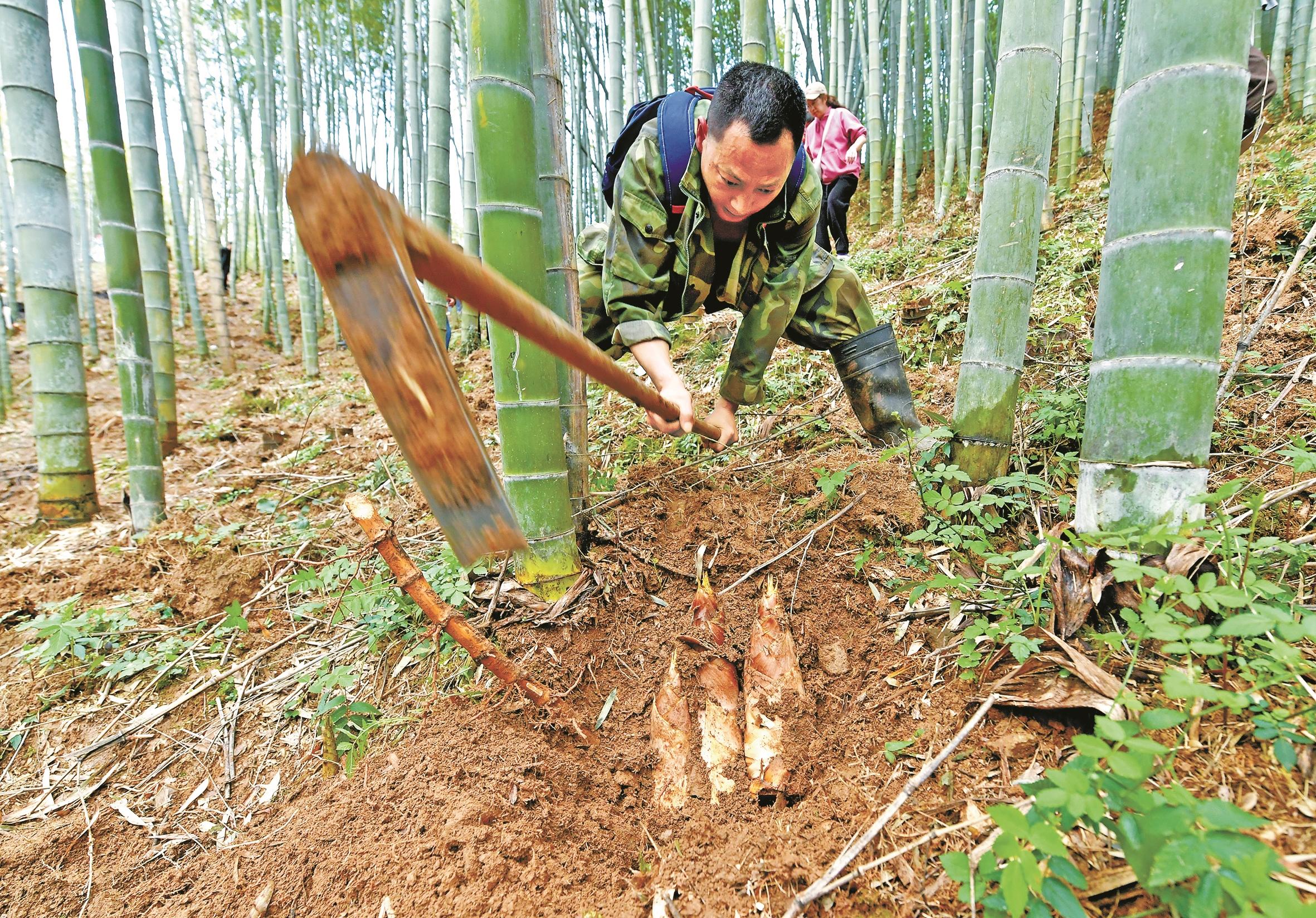 海曙横街镇拥有5万亩连片竹林,盛产春笋“黄泥拱”。连日来,该镇大雷村村口临时开辟的笋市人头攒动,现场交易活跃。(张昊桦 王博 摄)