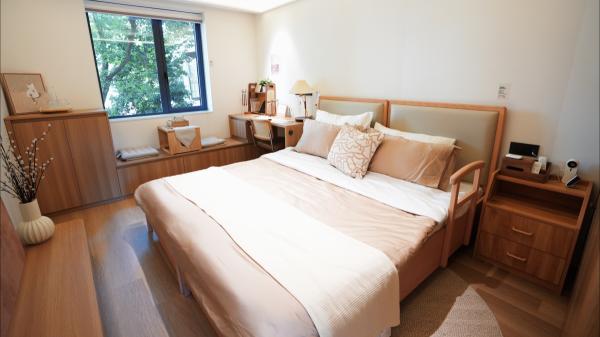 “老破小,也要有‘春天’。”走进鄞州丹凤二村7幢8号104室,你或许会“大吃一惊”。45平方米的空间,“麻雀虽小,五脏俱全”,不仅有电动床、淋浴扶手、洗浴凳、可升降灶台等适老化设施,还安装了智能门锁、AI康养系统、智慧中控等智能设备。通过装配化装修,整个改造过程仅用了29天。