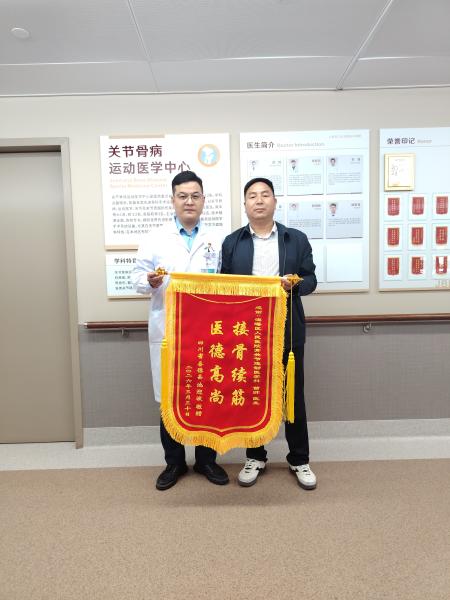 3月30日,海曙区人民医院迎来一位特殊的访客——来自四川省凉山彝族自治州喜德县的老池。老池专程飞抵宁波,只为亲手将一面锦旗送到骨关节运动医学科医生苗帅手中。这份跨越山海的感恩之情,源于苗帅的精湛医术与暖心陪伴。