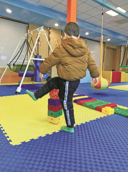 患儿正在宁海县妇幼保健院接受感觉统合训练。