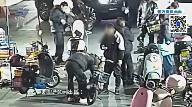 电动车修理店负责人:他没有(电动车)钥匙,然后没有电瓶,晚上的时候他又推了一辆过来,就感觉非常不对劲,商量价格的时候,本来是这个电瓶车是大几百,但是故意给他低价的时候,他也愿意(出售)。