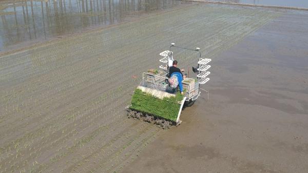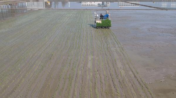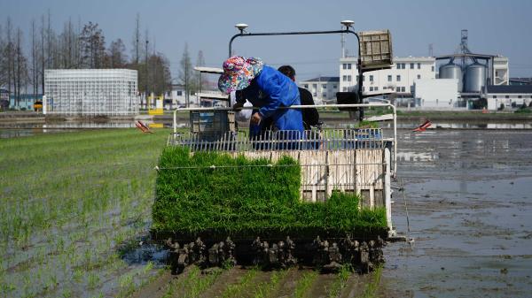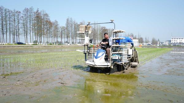 “今年比去年提早了五六天插秧,主要是今年气温比较暖和,有利于春耕春种。”该农场负责人卢为尖说,“从4月1日开始就插秧了,我们在这片种业公园区域有180亩水稻种植,三天左右就可以插种完秧苗。”