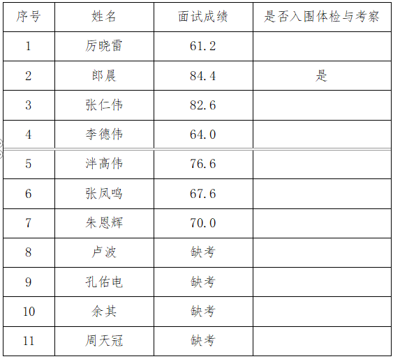 根据《BY2026031304ZP0000宁波报业传媒集团有限公司招聘启事(2026年3月13日)》有关程序,宁波日报物产有限公司公开招聘驾驶员(工勤)面试工作已结束。现将面试成绩及入围体检与考察人员名单公告如下:
