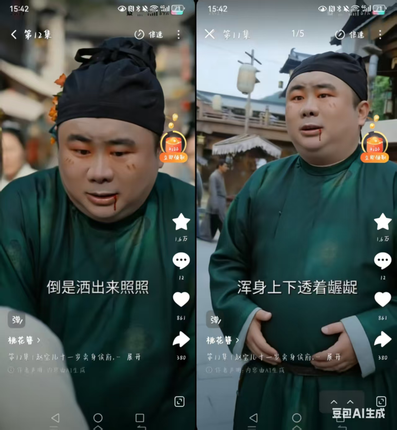 “我们行业内已经有一些演员,在和AI短剧公司签约,授权许可对方使用自己的肖像。但还有很多的小短剧公司,直接用AI生成,图片大多来源于网络,根本不考虑可能会侵权。”一位短剧青年演员告诉记者。