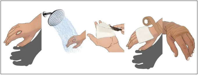 日常生活中出现的一些伤口,可以采用下方的家庭伤口护理流程,总共分4步: