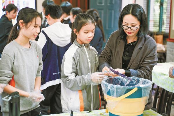 香港学生体验非遗漆扇制作。(通讯员供图)
