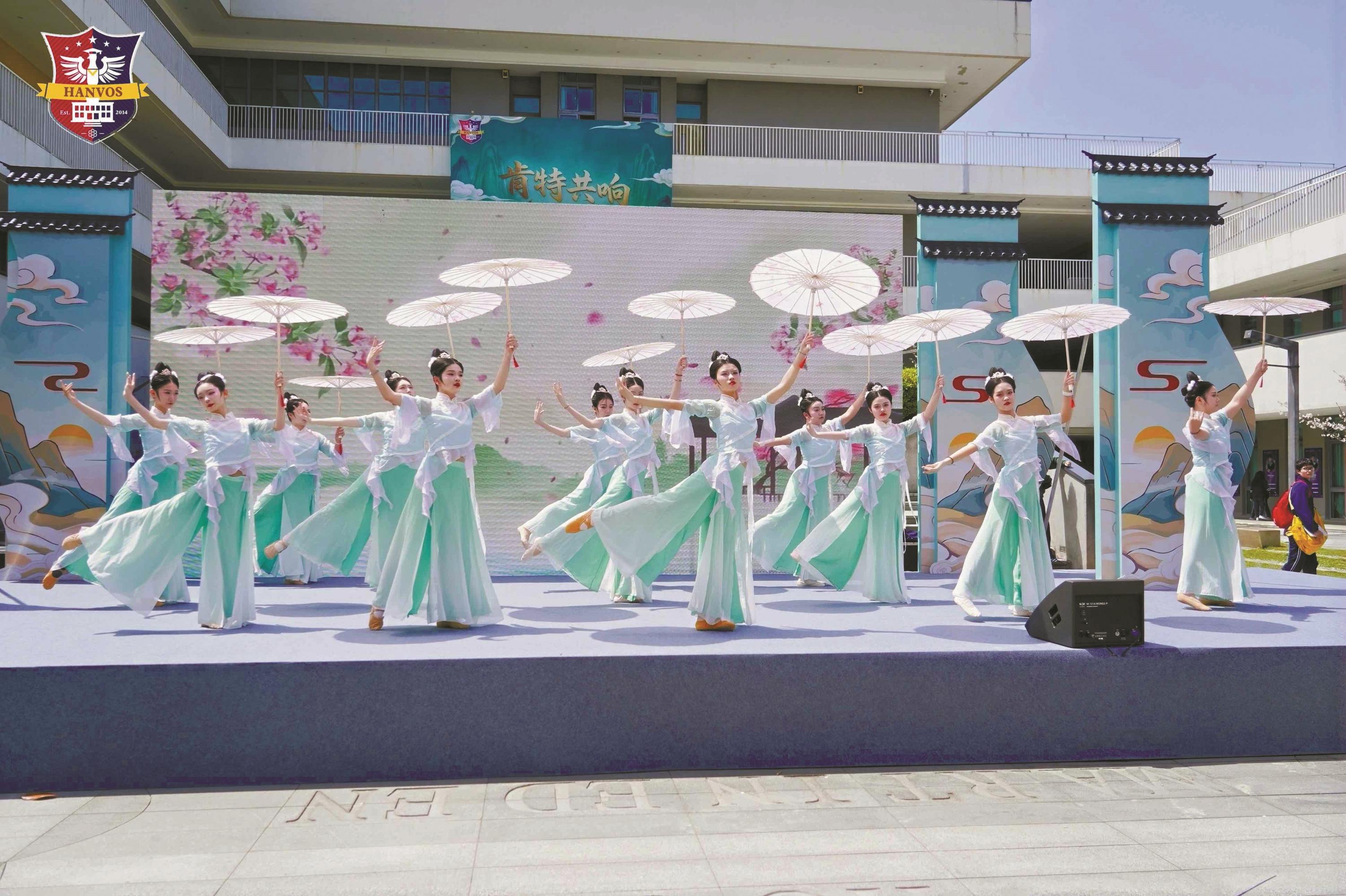 艺术节的舞台上,肯特学校多个传统文化和非遗俱乐部轮番登场,展现出浓厚的国际共创氛围。表演中国鼓的同学们带来气势磅礴的《天地龙鳞》,鼓声震天,龙魂激荡;中国舞俱乐部演绎《春和景明》《韵》等作品,曼妙舞姿尽显东方美学。