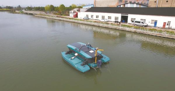 无人清淤船工作场景。