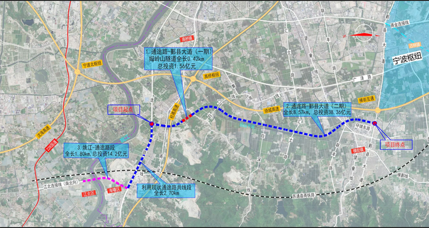 据批复文件,该项目位于海曙区高桥镇,北起余姚江海曙界,向南至通途路,接228国道通途路段。