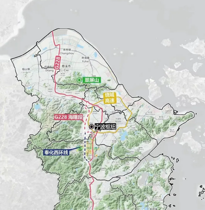 228国道海曙段再往南,可接顺奉化西环线北延。